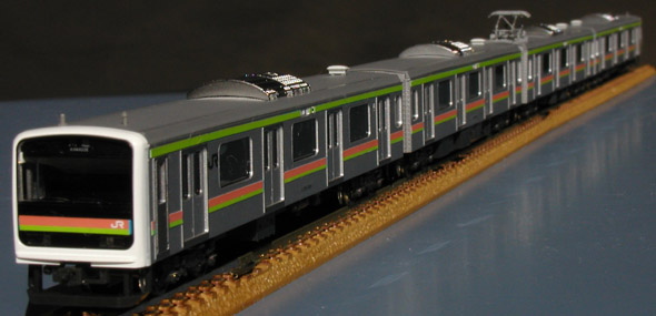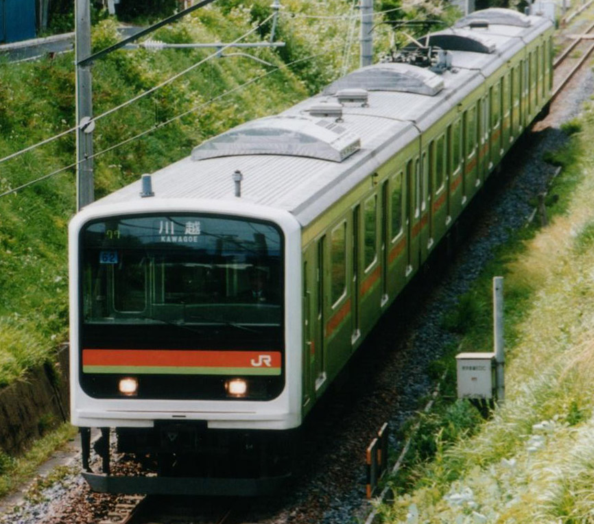 実車について:八高南線の電化開業にともない製作されました。 209系0番台との主な違いは、八高線内の運用を考慮して半自動ドアとし、 そのスイッチを設置したことです。現在、川越線,八高線で共通運用に就いています。 |