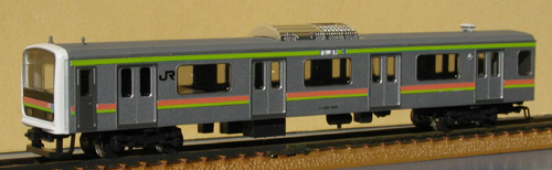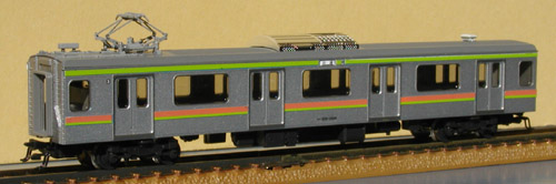| 模型について:Tomixの209系(京浜東北線色)をベースに、ペンギンハウスの帯シールを貼り付けるだけのお手軽改造です。 しかし3000番台もついに製品化されてしまい、この改造も意味が薄れてしまい残念です。せっかくなので、八高線セット余った車番インレタを用いてレベルアップを行いました。 | ||