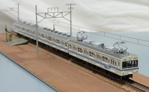 実車について:旧国鉄101系を購入した車輛です。3連12本が運用に就いており、現在でも秩父鉄道の主力形式になっています。平成6年より、それまでの黄色に茶帯から現行塗装へ塗り替えられました。同時期に冷房化も行っており、ダブルパンタ化も冷改時に行われました。 |