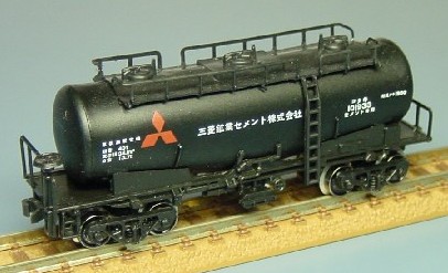 | 西武鉄道の東横瀬発のセメント輸送の末期はタキ1900のみの単一編成でしたが、それ以前では両端にワフが付き、狭山ヶ丘まではテキ401も連結されておりバラエティに富んでいました。そんな古きよき時代の編成を再現しております。 | ||