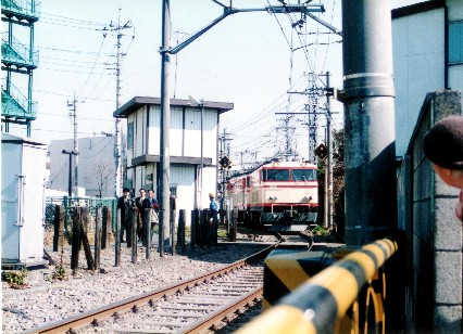 所沢車輛工場前 ここの踏み切りが閉まるのはかなり稀なことのようで、待っている人は皆興味深げに覗き込んででいました。 |